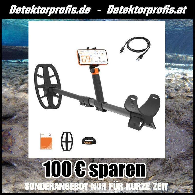 Der Quest AIR Metalldetektor eröffnet Ihnen eine völlig neue Art der Schatzsuche, indem er Ihr Smartphone zur Steuereinheit macht. Mit der innovativen Quest Air MD App können Sie ganz einfach tief in die Welt der Metalle eintauchen und dank Bluetooth-Verbindung Ihr Smartphone flexibel einsetzen.